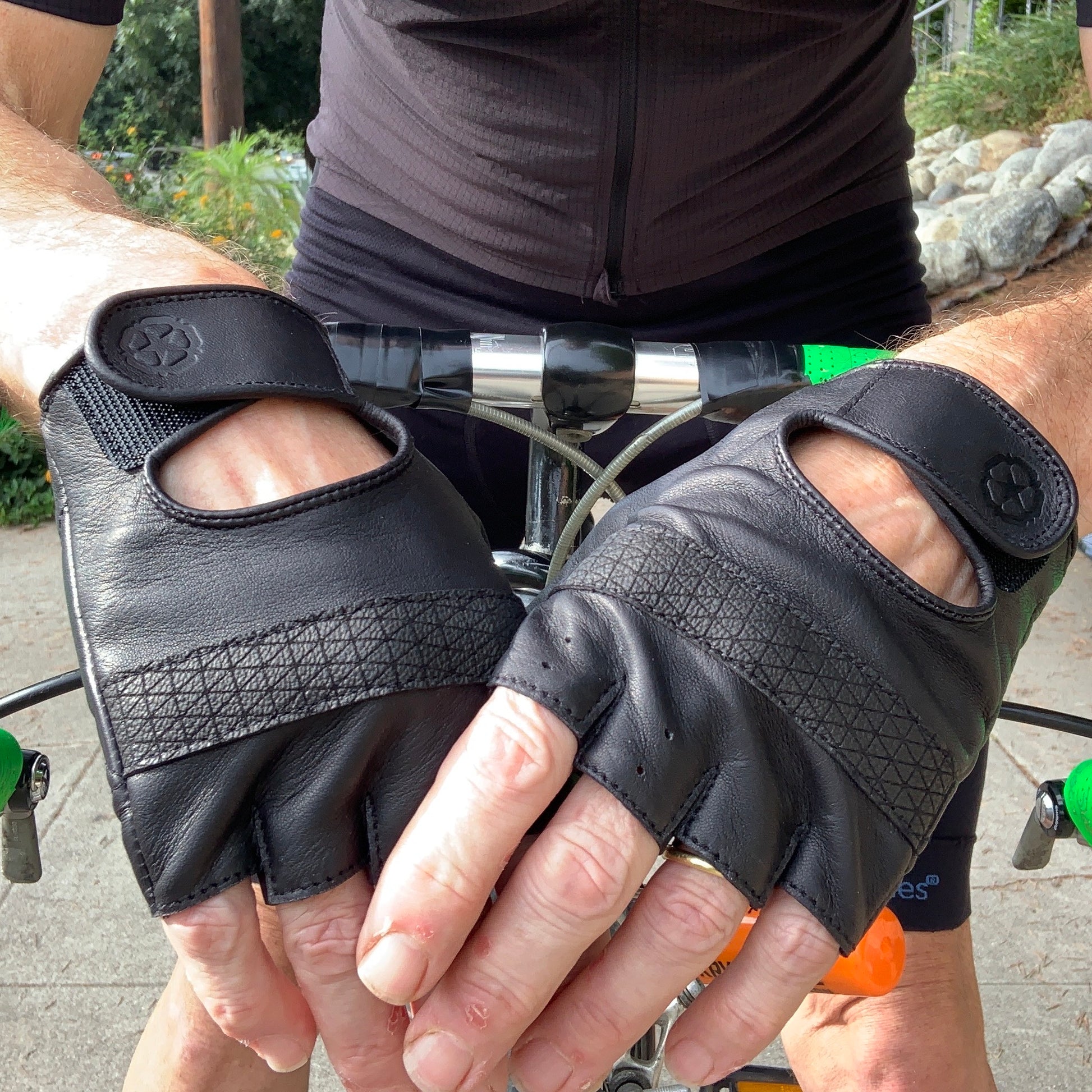 Our Harry half finger cycling gloves are inspired by our Tommy and Rodney mitts. We rode both these styles hard, listened to customer feedback and took the top of hand detailing from Tommy (with a smaller keyhole opening) and paired it with the palm detail from Rodney.
