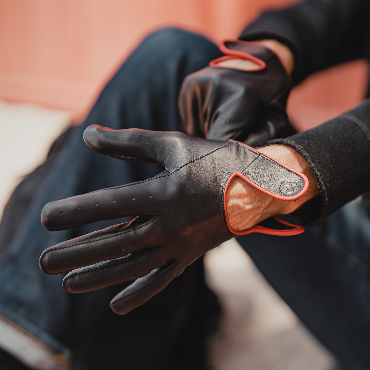 Inspired by our half finger ride glove styles, they're at home on road, trail or any environment and are suitable for all seasons except deepest winter. And they offer the tightest fit with a clean velcro pull strap finish. Handmade in California in numbered batches, they’re elegantly detailed, extremely comfortable, perfectly fitted below the wrist.